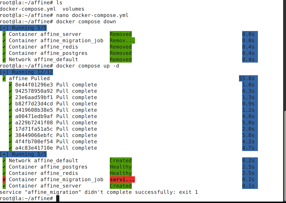 affine_postgres | waiting for server to shut down…2026-02-07 07:20:07.320 UTC [50] LOG: received fast shutdown request