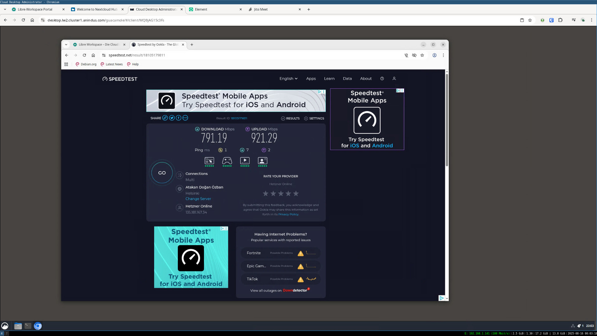 After many, many hours, Libre Workspace was integrated into an IPv6-dominated network. All components are working together, and on top of that, we have great download speeds inside the SaaS environment.
