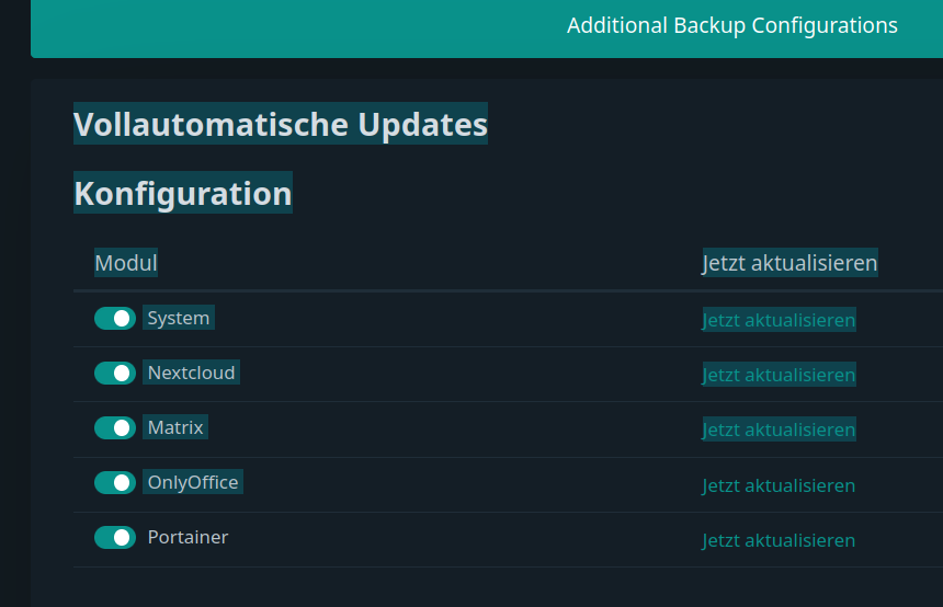 Hallo juri, Danke für Deine Nachricht, Du meinst das Nextcloud Update ? Oder ein Docker Update. Letztes weissi hc nich wie das geht und würde um Hilfe bitten…
